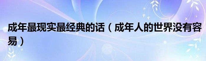 最佳答案大家好,我是小科,我来为大家解答以上问题。成年最现实最经典的话,成年人的世界没有容易很多人还不知道,现在让我们一起来看看吧!1、看你怎么理解。2、但是,不管是哪个阶段的世界,都没有容易这种事情。都是需要付出自己的努力才行的。本文到此讲解完毕了,希望对大家有帮助。