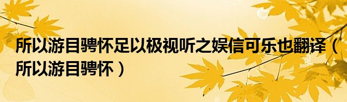 大家好,我是小科,我来为大家解答以上问题。所以游目骋怀足以极视听之娱信可乐也翻译,所以游目骋怀很多人还不知道,现在让我们一起来看看吧!