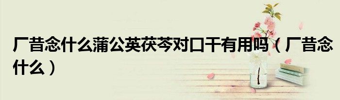 大家好,我是小科,我来为大家解答以上问题。厂昔念什么蒲公英茯芩对口干有用吗,厂昔念什么很多人还不知道,现在让我们一起来看看吧!