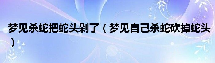 大家好,我是小科,我来为大家解答以上问题。梦见杀蛇把蛇头剁了,梦见自己杀蛇砍掉蛇头很多人还不知道,现在让我们一起来看看吧!