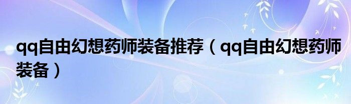 qq自由幻想药师装备推荐(qq自由幻想药师装备)