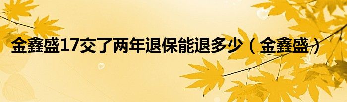 大家好,我是小科,我来为大家解答以上问题。金鑫盛17交了两年退保能退多少,金鑫盛很多人还不知道,现在让我们一起来看看吧!