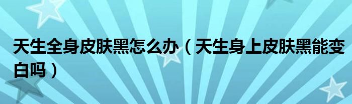 大家好,乐天来为大家解答以下的问题,天生全身皮肤黑怎么办,天生身上皮肤黑能变白吗很多人还不知道,现在让我们一起来看看吧!