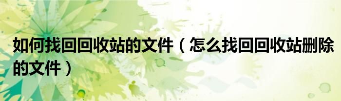 以上是关于如何恢复回收站中已删除文件以及如何恢复已删除文件的介绍。希望对你有帮助!