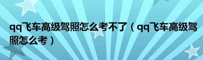 大家好,小晋来为大家解答以下问题,关于qq飞车高级驾照怎么考不了,qq飞车高级驾照怎么考很多人还不知道,今天让我们一起来看看吧!