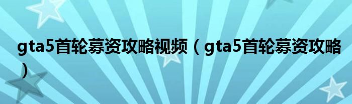 大家好,小晋来为大家解答以下问题,关于gta5首轮募资攻略视频,gta5首轮募资攻略很多人还不知道,今天让我们一起来看看吧!
