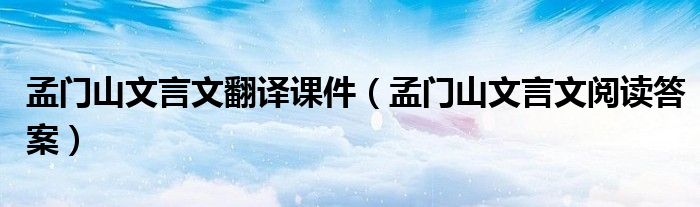大家好,小晋来为大家解答以下问题,关于孟门山文言文翻译课件,孟门山文言文阅读答案很多人还不知道,今天让我们一起来看看吧!