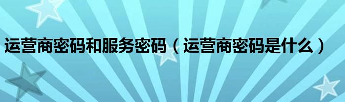 运营商密码和服务密码(运营商密码是什么)