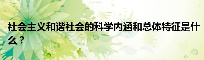 关于社会主义和谐社会的科学内涵和总体特征是什么?这个很多人还不知道,今天菲菲来为大家解答以上的问题,现在让我们一起来看看吧!