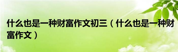 关于什么也是一种财富作文初三,什么也是一种财富作文这个很多人还不知道,今天菲菲来为大家解答以上的问题,现在让我们一起来看看吧!