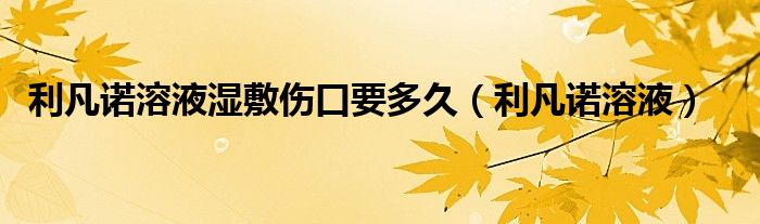 大家好,小晋来为大家解答以下问题,关于利凡诺溶液湿敷伤口要多久,利凡诺溶液很多人还不知道,今天让我们一起来看看吧!