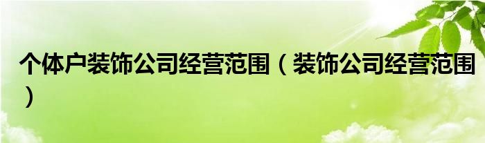 大家好,小晋来为大家解答以下问题,关于个体户装饰公司经营范围,装饰公司经营范围很多人还不知道,今天让我们一起来看看吧!
