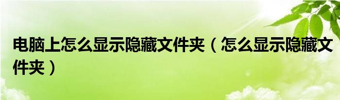 大家好,小晋来为大家解答以下问题,关于电脑上怎么显示隐藏文件夹,怎么显示隐藏文件夹很多人还不知道,今天让我们一起来看看吧!