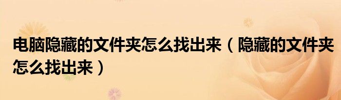大家好,来宝来为大家解答以下问题,电脑隐藏的文件夹怎么找出来,隐藏的文件夹怎么找出来很多人还不知道,今天让我们一起来看看吧!
