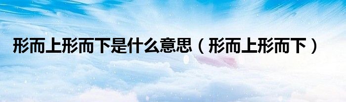 关于形而上形而下是什么意思,形而上形而下这个很多人还不知道,今天菲菲来为大家解答以上的问题,现在让我们一起来看看吧!