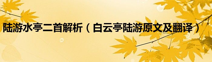 关于陆游水亭二首解析,白云亭陆游原文及翻译这个很多人还不知道,今天菲菲来为大家解答以上的问题,现在让我们一起来看看吧!