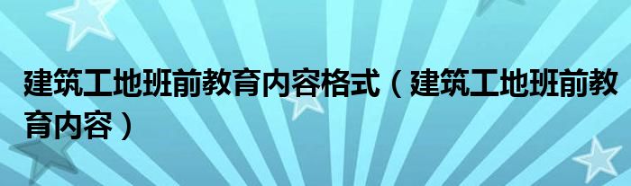 关于建筑工地班前教育内容格式,建筑工地班前教育内容这个很多人还不知道,今天菲菲来为大家解答以上的问题,现在让我们一起来看看吧!