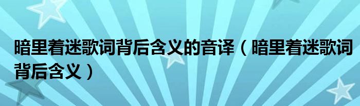 关于暗里着迷歌词背后含义的音译,暗里着迷歌词背后含义这个很多人还不知道,今天菲菲来为大家解答以上的问题,现在让我们一起来看看吧!