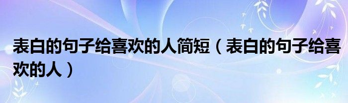 大家好,小飞来为大家解答以上问题,表白的句子给喜欢的人简短,表白的句子给喜欢的人很多人还不知道,现在让我们一起来看看吧!