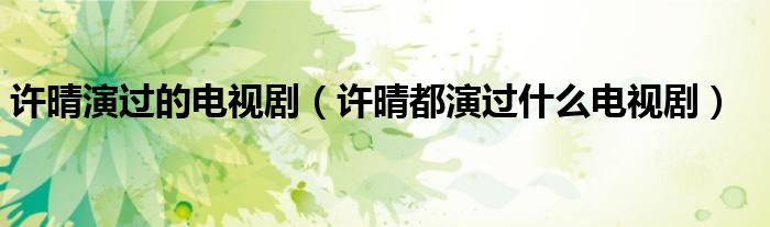 关于许晴演过的电视剧,许晴都演过什么电视剧这个很多人还不知道,今天菲菲来为大家解答以上的问题,现在让我们一起来看看吧!