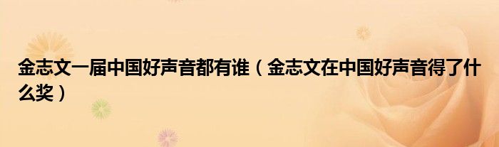 关于金志文一届中国好声音都有谁,金志文在中国好声音得了什么奖这个很多人还不知道,今天菲菲来为大家解答以上的问题,现在让我们一起来看看吧!