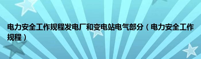 电力安全工作规程发电厂和变电站电气部分(电力安全工作规程)