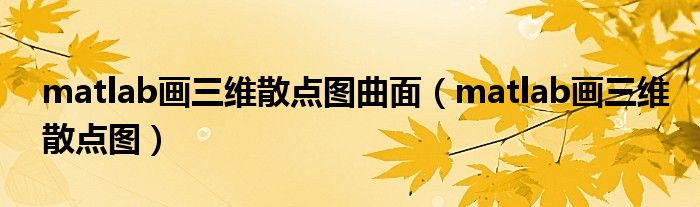 关于matlab画三维散点图曲面,matlab画三维散点图这个很多人还不知道,今天菲菲来为大家解答以上的问题,现在让我们一起来看看吧!