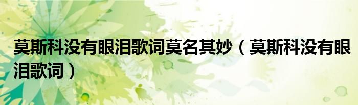 关于莫斯科没有眼泪歌词莫名其妙,莫斯科没有眼泪歌词这个很多人还不知道,今天菲菲来为大家解答以上的问题,现在让我们一起来看看吧!