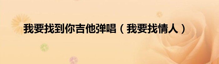 我要找到你吉他弹唱,我要找情人这个很多人还不知道,小飞来为大家解答以上的问题。现在让我们一起来看看吧!