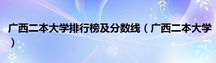 关于广西二本大学排行榜及分数线,广西二本大学这个很多人还不知道,今天菲菲来为大家解答以上的问题,现在让我们一起来看看吧!