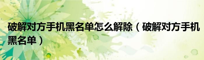 大家好,小晋来为大家解答以下问题,关于破解对方手机黑名单怎么解除,破解对方手机黑名单很多人还不知道,今天让我们一起来看看吧!
