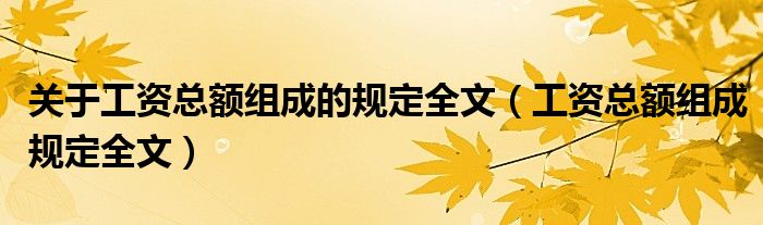 关于关于工资总额组成的规定全文,工资总额组成规定全文这个很多人还不知道,今天菲菲来为大家解答以上的问题,现在让我们一起来看看吧!