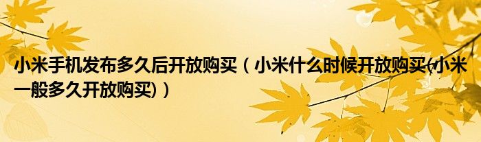 大家好,小常来为大家解答以上问题。小米手机发布多久后开放购买,小米什么时候开放购买(小米一般多久开放购买)很多人还不知道,现在让我们一起来看看吧!