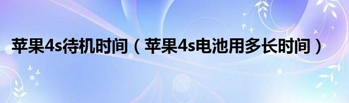 6,苹果4S正常待机是多少时间啊 :苹果4s型号的手机在充满电后,正常使用一般可以使用一到两天。实际使用时间根据用户的使用强度而定,如果是重度手机控,每天手机不离手,那么该机一般可以提供6到8小时的续航时间,如果中度使用,每日按四小时玩机时间计算,加上正常通话短信,待机一天是没有问题的,如果使用较少,可以待机到两天左右。