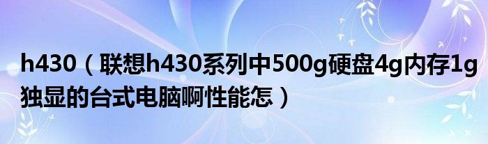 1,联想h430系列中500g硬盘4g内存1g独显的台式电脑啊性能怎:配置不太好,尤其是显卡不好,Lol是能玩的,效果不能太好,这个价位组装台式机比较好联想 家悦 H430 台式电脑 - 联想所属:联想 家悦 H4系列显示器尺:20英寸 CPU 型号:Intel 奔腾双核 G645 CPU 频率:2.9GHz 内存容量:2GB DDR3 硬盘容量:500GB 显卡芯片:AMD Radeon HD 7450 512M 更多参数>> 评测(12) 图片(1) 点评(1) 评分:4 ¥3100