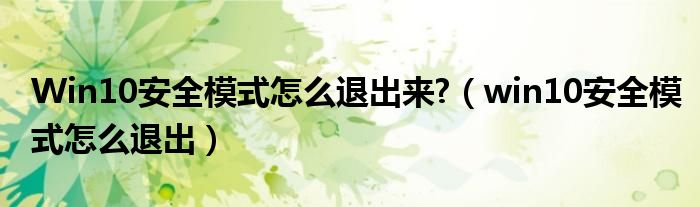 Win10安全模式怎么退出来?(win10安全模式怎么退出)