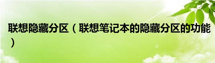 大家好,小常来为大家解答以上问题。联想隐藏分区,联想笔记本的隐藏分区的功能很多人还不知道,现在让我们一起来看看吧!