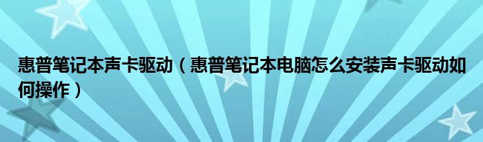 1,惠普笔记本电脑怎么安装声卡驱动?如何操作? :什么系统?vista的话,到官网直接下载驱动安装即可xp的话先安装UAA总线驱动,再安装声卡驱动
