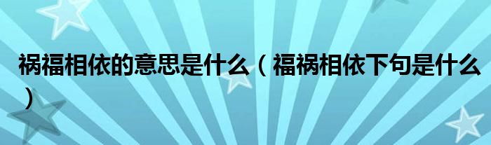 关于祸福相依的意思是什么,福祸相依下句是什么这个很多人还不知道,今天菲菲来为大家解答以上的问题,现在让我们一起来看看吧!