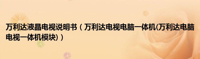 大家好,小常来为大家解答以上问题。万利达液晶电视说明书,万利达电视电脑一体机(万利达电脑电视一体机模块)很多人还不知道,现在让我们一起来看看吧!