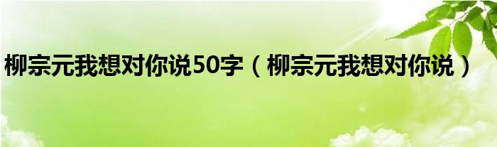 柳宗元我想对你说50字(柳宗元我想对你说)