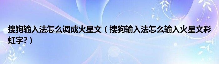 大家好,今天小悦来为大家解答以上问题。搜狗输入法怎么调成火星文,搜狗输入法怎么输入火星文彩虹字?很多人还不知道,现在让我们一起来看看吧!