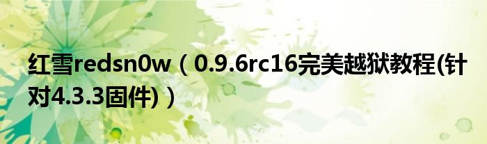 大家好,今天小悦来为大家解答以上问题。红雪redsn0w,0.9.6rc16完美越狱教程(针对4.3.3固件)很多人还不知道,现在让我们一起来看看吧!