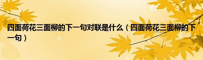 四面荷花三面柳的下一句对联是什么,四面荷花三面柳的下一句这个很多人还不知道,小飞来为大家解答以上的问题。现在让我们一起来看看吧!