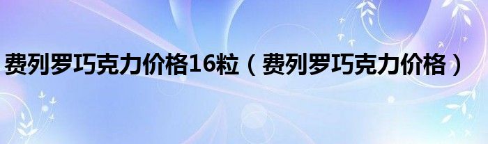 费列罗巧克力价格16粒,费列罗巧克力价格这个很多人还不知道,小飞来为大家解答以上的问题。现在让我们一起来看看吧!