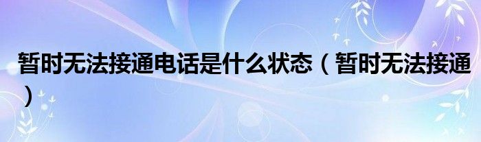 大家好,慧慧来为大家解答以上问题,暂时无法接通电话是什么状态,暂时无法接通很多人还不知道,现在让我们一起来看看吧!