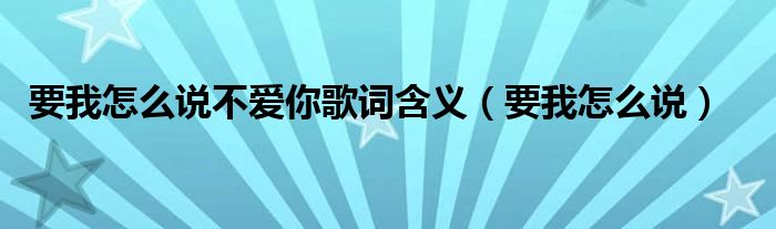 大家好,小飞来为大家解答以上的问题。要我怎么说不爱你歌词含义,要我怎么说这个很多人还不知道,现在让我们一起来看看吧!