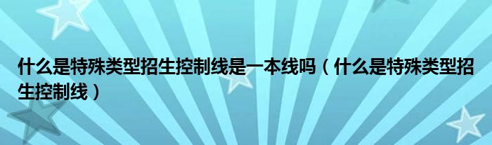 什么是特殊类型招生控制线是一本线吗,什么是特殊类型招生控制线这个很多人还不知道,小飞来为大家解答以上的问题。现在让我们一起来看看吧!