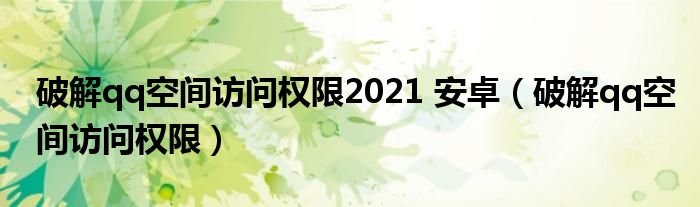 大家好,慧慧来为大家解答以上问题,破解qq空间访问权限2021 安卓,破解qq空间访问权限很多人还不知道,现在让我们一起来看看吧!