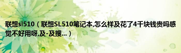 1,联想SL510笔记本,怎么样? 花了4千块钱贵吗?感觉不好用呀, - 搜...:这个价格不贵。thinklpad系列都偏向商务,要好用就买T系列最后后面带P的。好不好用完全是个人感觉。thinkpad的质量很不错的。或许你不习惯用win7吧,装回xp就好用了。
